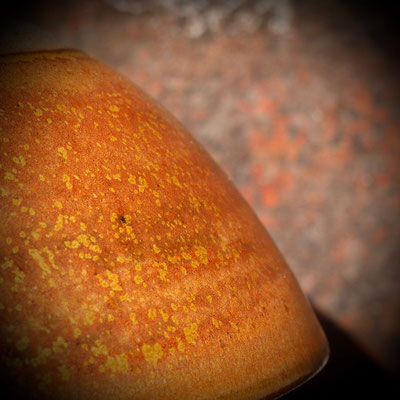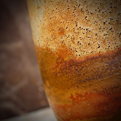 La température monte et l'émail entre en fusion. L’observer par la cheminée à travers des verres fumés. Je vois la texture de l'émail évoluer. J'approche les 1300°C…